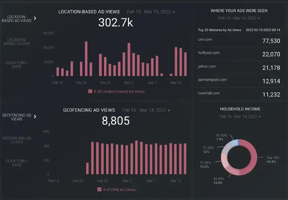 The digital ad campaigns achieved over 303,000 ad views, almost 9,000 geo-fenced/targeted ad views, with a click through rate of .27%, double the national average for real estate listing ads.